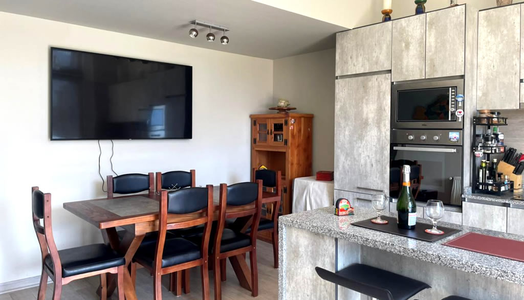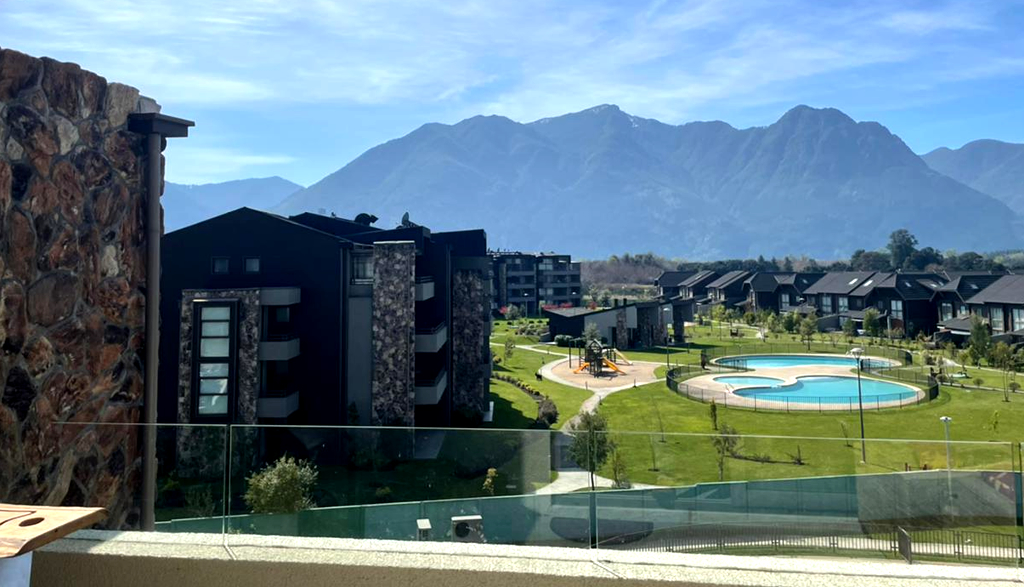 Dpto ubicado en un sector tranquilo y frente a la playa grande de Pucón. En un Condominio Privado con piscina exterior cerca de restaurantes, tiendas, supermercados, enjoy Pucón, hotel Pucón y todo lo que deseas para disfrutar sin necesidad de sacar el auto.